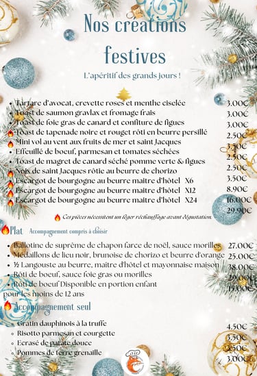Découvrez nos menus de Noël et nos créations gourmandes, spécialement conçus pour sublimer vos fêtes